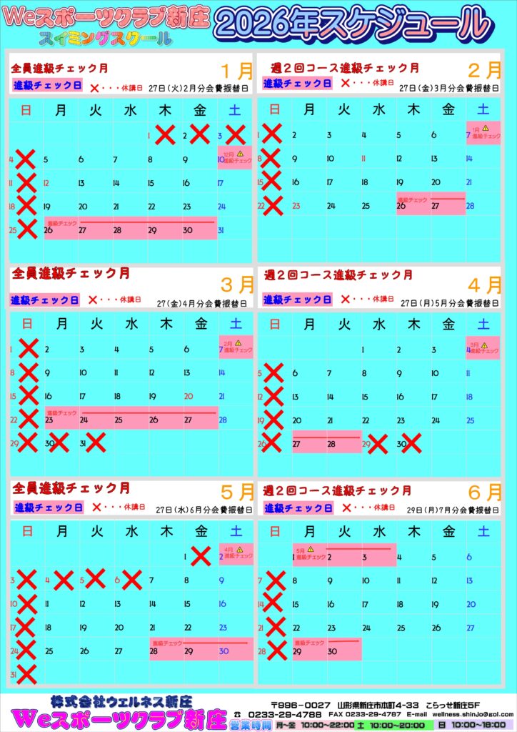 スイミングスクール2026年カレンダー